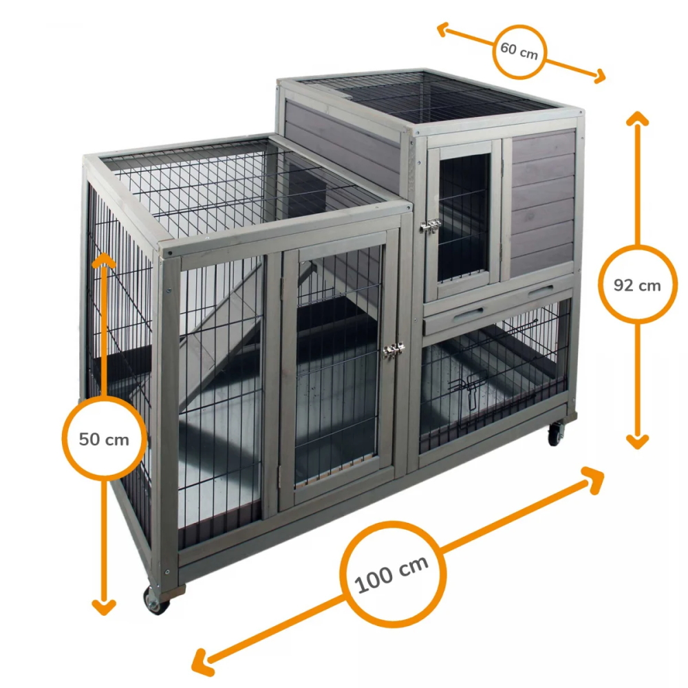 يصلك هذا القفص الأحترافي بمقاس 120 سم في 50 سم في ارتفاع 103 سم مزود بسلم يسمح بتوافر مساحة هائلة لتحرك حيوانك الأليف هذا القفص مناسب للقطط وصوص الدجاج والأرانب والعديد يمتاز هذا القفص بأمكانية فتحة من الأعلى او من الأمام